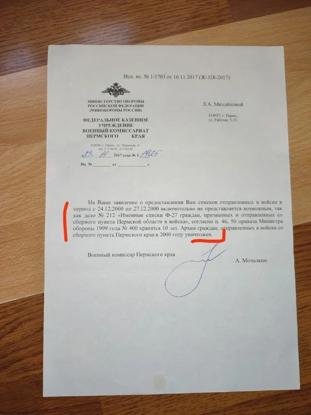 В 2016 году, после истечению 15 лет, дело прекратили и передали в архив. Изменения грифа секретности у подобных дел не предусмотрено. Так мама призывника никогда не узнает, какие тайны о ее сыне хранят эти документы.