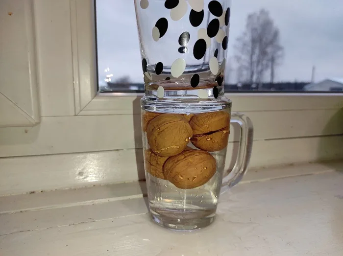 И накрываем сверху крышкой, чтобы орехи были полностью погружены в воду. В воде орехи оставляем на час.