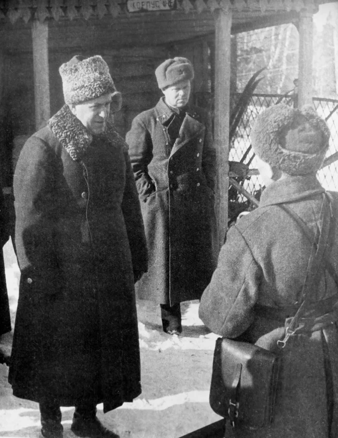 Командующий 16-й армией генерал-лейтенант Константин Рокоссовский со своим штабом в районе Истры, декабрь 1941