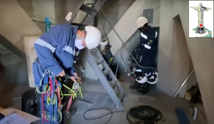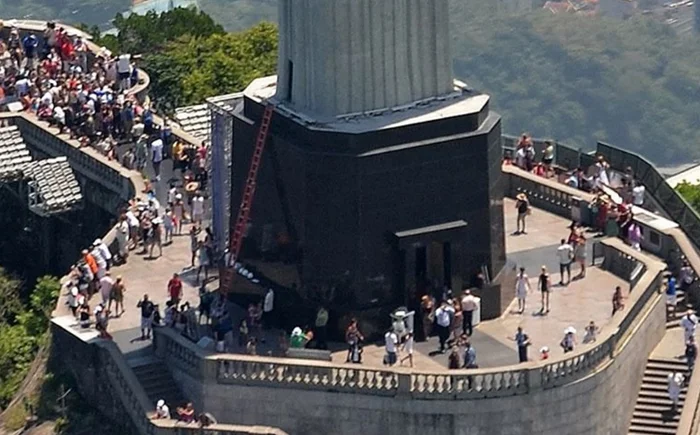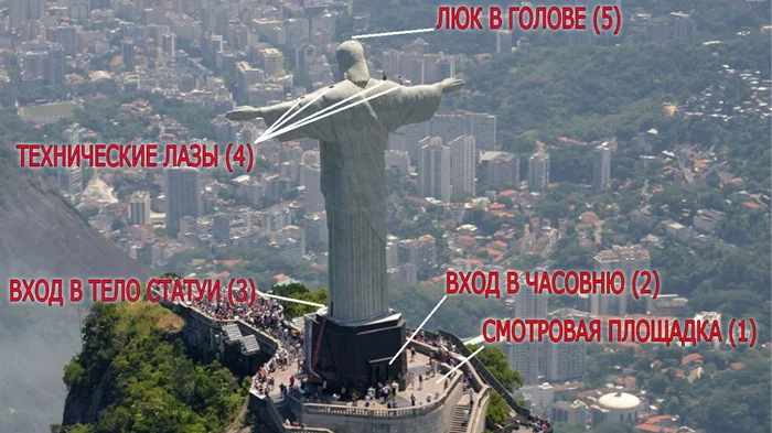 Если вы не страшитесь высоты и не боитесь получить премию Дарвина, можете походить по внешней стороне рук. По телу статуи проходит молниеотвод, на фото это металлические штыри с толстой проволокой. Он может использоваться для зацепа тросов и прочих альпинистских приспособлений.