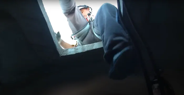Что ж, начнём обследование рук. Идём по проходу. В области груди и предплечья он достаточно высокий, чтобы мы могли идти в полный рост. Но постепенно он сужается, пока не превращается в узкий горизонтальный лаз.
