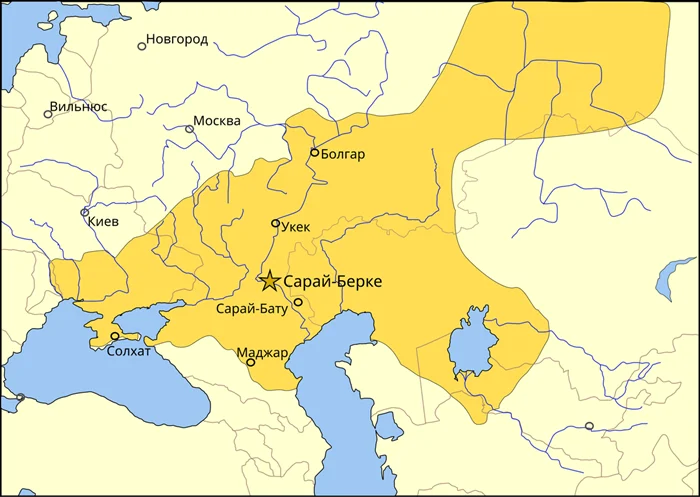 Кстати улус Джучи еще долго оставался крупнейшим государством Средневековья. Столица Золотой Орды - Сарай-Берке, располагалась на территории современной Волгоградской области.