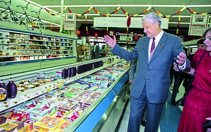 Ельцин восхищается обилием товаров в американском супермаркете в 1989 году