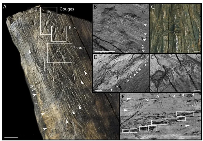 Разные типы отметин на кости лошади