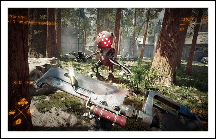 Теперь перейдём к боевой системе, которая вышла намного более насыщенной и сложной, чем казалось по трейлерам. Atomic Heart очень сильно ориентирована на сражения с применением всего арсенала, который оказался достаточно богат. В распоряжении игрока находятся как различные образцы огнестрельного оружия, энергетические пушки, так и более экзотичные полимерные способности и оружие ближнего боя.