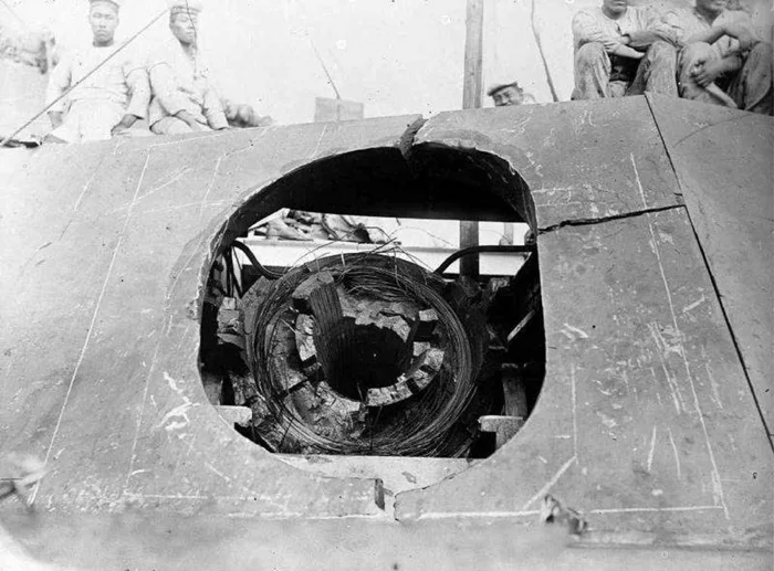 Порванный ствол «Микасы» после боя в Жёлтом море