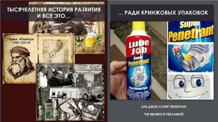 К сожалению, лекцию пришлось сильно урезать, я не успел рассказать ни про пластичную смазку (особеннопро фанатов синей советской «мази»), ни про знаменитую ВД-40 (которая вообще не смазка), ни про приколы самолета А350 с его списком из 30 различным цветов для смазок. Это я оставляю для особо интересующихся при личном общении, всем спасибо~