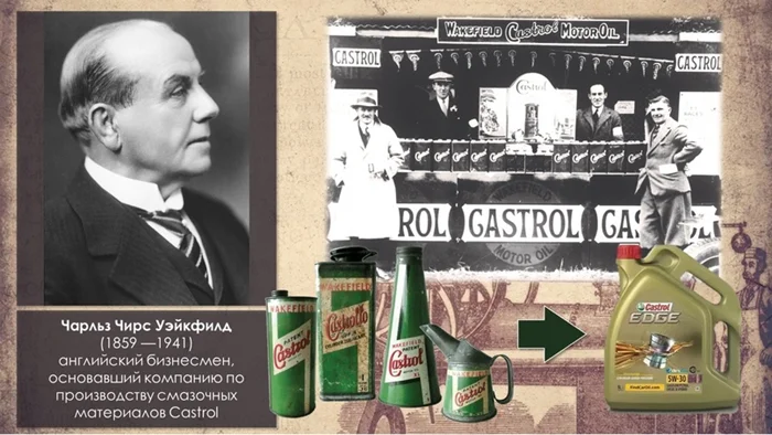 Смазки нужны везде, ведь идет агрессивное развитие техники, повсюду и подшипники, и валы, и цилиндры, и… дичайшие скорости. У автомобилей и самолетов особенно. Появляется огромное количество брендов. Самый знаменитый тогда, например, Кастрол. Это слово стало почти нарицательным. Кастрол был прорывным маслом, потому что его научные сотрудники заметили один момент: при добавлении небольшой доли касторки – растительного масла - к минеральной смазке – она становится достаточно вязкой и устойчивой для работы при высоких температурах. При этом она остается достаточно текучей для заправки при холодном пуске.