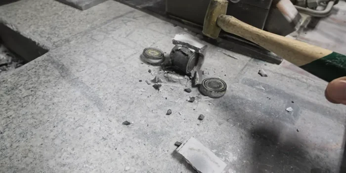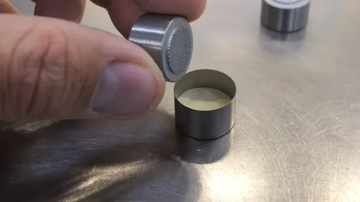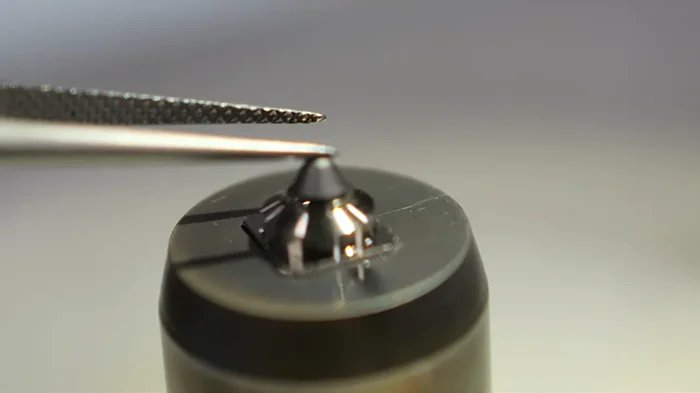 Преобразование синтетической алмазной пыли в крупный кристалл, пригодный для буровых установок, начинается с помещения порошка в металлическую емкость размером с наперсток. Производственный процесс требует добавления кобальта из кобальт-цементированного карбида вольфрама, выступающего субстратом для формирующегося алмаза.