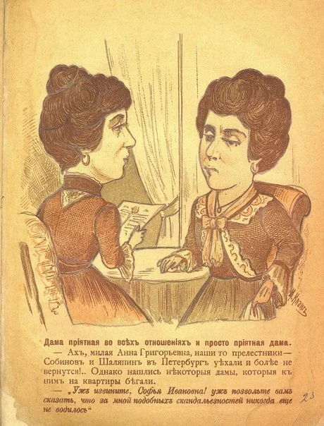 — А я, признаюсь, как только вы открыли рот, я уже смекнула, в чём дело, — отвечала дама приятная во всех отношениях.