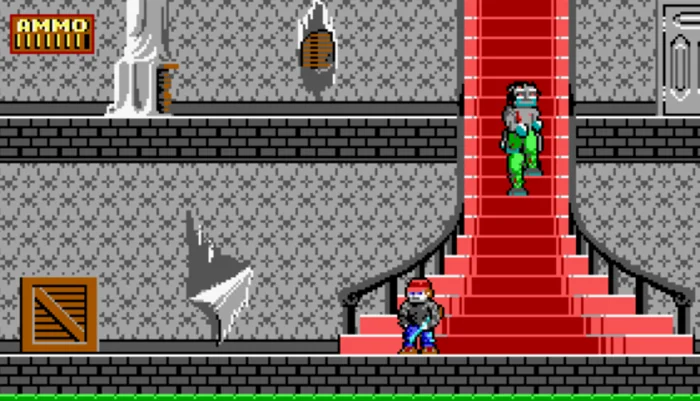 В игре "Dangerous Dave in the haunted mansion" мы берем на себя роль мужика с дробовиком, который пробирается в дом, населенный потусторонними существами с целью освободить своего похищенного брата.