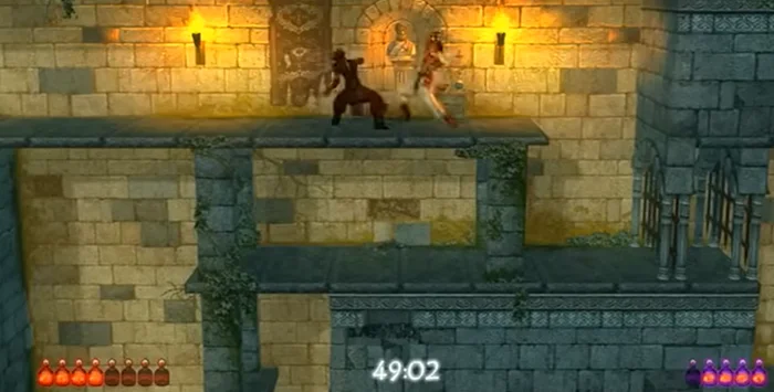Но самое главное нововведение заключалось именно в управлении времени. Благодаря кинжалу, Принц мог немного управлять временем, а именно временно его замедлять и возвращаться назад на пару-тройку секунд назад. Эта функция была очень полезна, если мы вдруг упадем в пропасть.