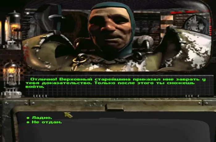 Теперь остается лишь вернуться в Убежище 13, чтобы отдать чип смотрителю. Мы возвращаем чип, пишем отчет смотрителю, а через недельку старый и бесполезный смотритель вызывает нас и говорит, что весьма обеспокоен проблемой супермутантов. В общем, как вы помните, нам нужно будет разобраться с этой пролемой.