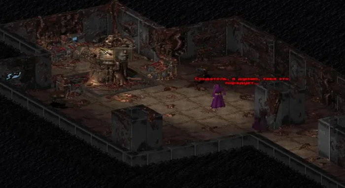 В соборе мы можем подняться наверх и знатно поговорить с лидером сектантов. Правда, на самом деле лидером он не является, ведь всем (в том числе и созданием супермутантов) рулит некий Создатель. Мы просим этого лидера отвести нас к создателю, и это прокатывает. Мы действительно попадаем сразу к финальному боссу.