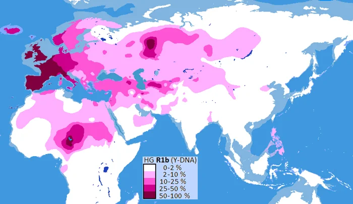 Гаплогруппа R1b возникла около 20 400 лет назад и является доминирующей в Западной Европе, особенно среди населения Британских островов, Франции и Испании. Она также присутствует в Центральной Азии и на Ближнем Востоке.