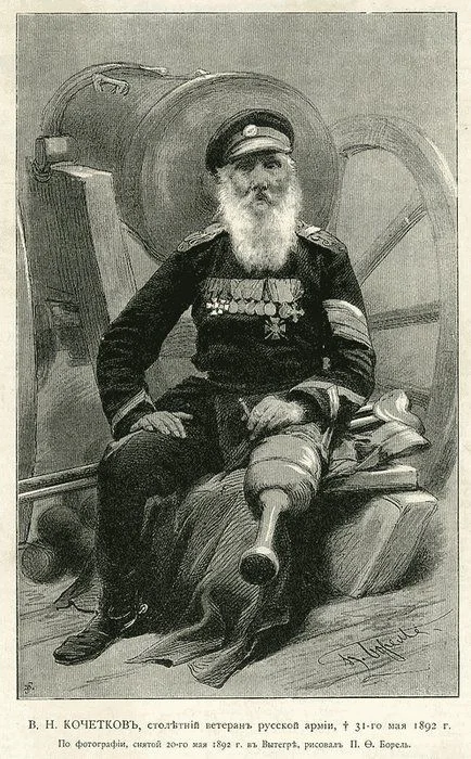 Имя Василия Кочеткова знакомо лишь узкому кругу историков и журналистов, и остается он полумифической личностью. Этот человек имеет яркую биографию. Он служил при трех императорах – Александре I, Николае I и Александре II, участвовал в 10 войнах и дожил до 107 лет.