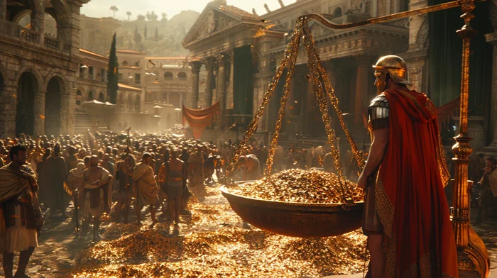 Давайте пересчитаем богатство Красса на современные деньги: 230 тонн серебра – это 23 миллиарда рублей (по состоянию на конец 2024 года), или около 224 миллиона долларов. Это если пересчитывать по текущим ценам на серебро.