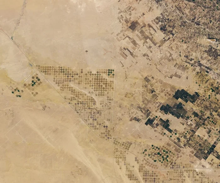 Снимки сделаны спутниками NASA Landsat 8 и 9. Сравнивая изображения, полученные в ноябре 2018 года и ноябре 2023 года, видны значительные изменения. Там, где раньше были пески пустыни, теперь, в мухафазах Александрия и Бухейра, появились четкие контуры полей, зеленеющие участки.
