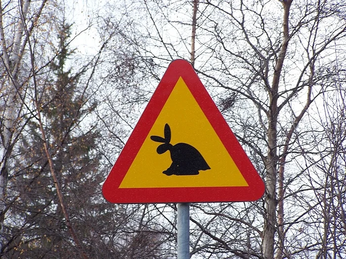 Шуточный дорожный знак рядом с музеем предупреждает о сквадерах на дороге