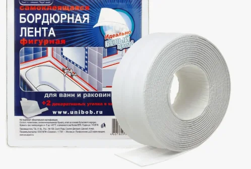 Первый способ. Клейкая полиуретановая лента. Интересно, что у нас тоже есть такие ленты, только сделаны они из мягкого ПВХ, который слишком жёсткий и при малейших подвижках ванны, плитки или ударной нагрузки начинает топорщиться, отходить от стены или ванны и доставлять хозяевам ещё большее неудобство.
