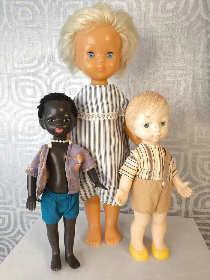 Взять те же куклы. Вместо изящных, но однообразных красоток дореволюционного образца появились самые разные типажи: красноармейцы в будёновках, матросы и почтальоны, работницы в красных косынках... Когда вся страна следила за эпопеей челюскинцев в Арктике, ряды игрушек пополнили белые мишки. Когда в 1957 году в Москве проходил Всемирный фестиваль молодёжи и студентов, вышла серия игрушек на тему интернациональной дружбы – куклы-негритята, куклы-азиаты.