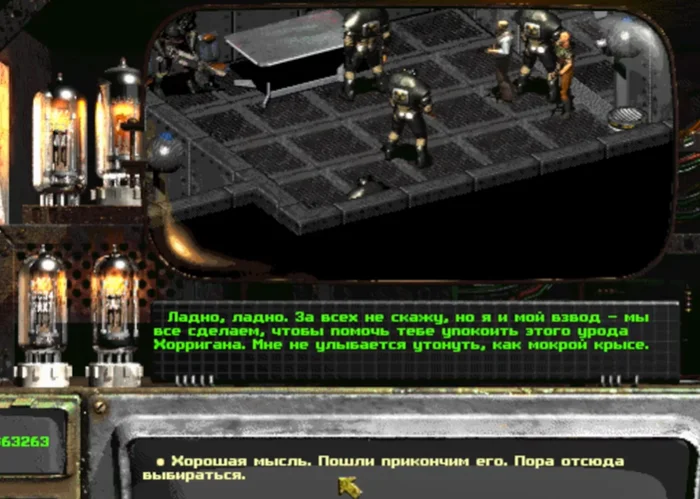 При должном уровне интеллекта и красноречия вам удастся это сделать. И тогда солдаты Анклава вместе с турелями сами вступят в бой с Хорриганом, а вы будете стоять в сторонке "с попкорном" и наблюдать за этим делом.