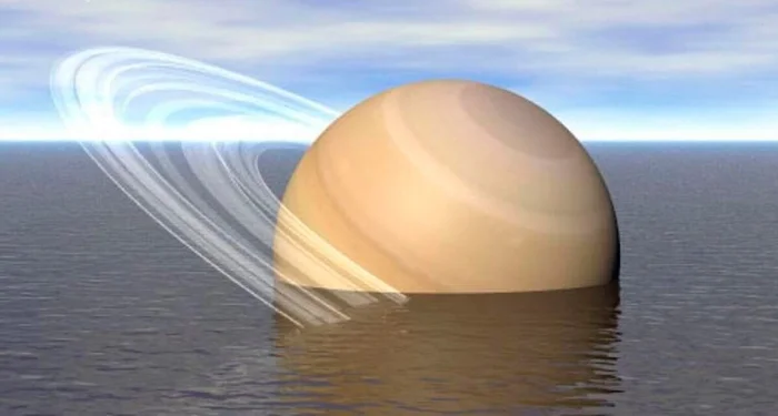 Сатурн — это газовый гигант с такой низкой плотностью (0,687 г/см³), что он мог бы плавать в воде, если бы нашлась ванна подходящего размера. Для сравнения, плотность воды — 0,998 г/см³.