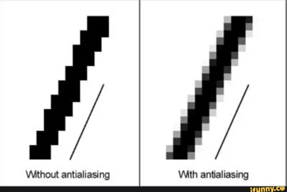 Так вот, чтобы убрать эти "лесенки", то придумали Anti-Aliasing, или если по-простому - сглаживание, которое получает информацию о таких вот "лесенках" и сглаживает их, чтобы получить картинку справа.