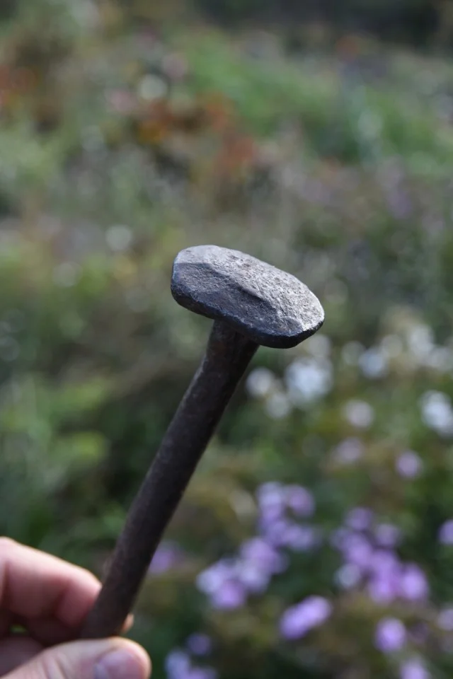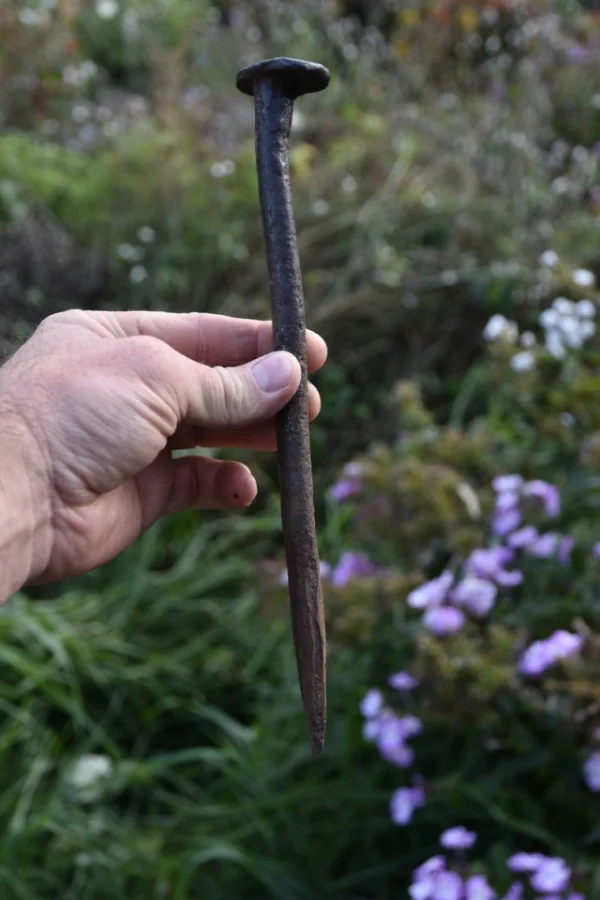 В 5-10 сантиметрах от корня дерева вбивался в землю здоровенный кованый гвоздь.