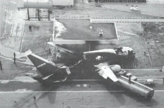 Пилоты Боинга попытались уклониться от столкновения и задействовали тормоза, но через мгновение раздался грохот и под фюзеляжем прогремел взрыв. После него нос Боинга резко подскочил вверх и тут же снова опустился. Горящие лайнеры вылетели влево с полосы и врезались в пустующее здание пожарной станции. При этом маленький Метро полностью разрушился, а Боинг разломился на две части и выгорел изнутри. В катастрофе погибли 34 человека: 22 на борту Боинга (в том числе КВС) и все 12 на борту Метро. В течение месяца после катастрофы от полученных травм скончались еще 2 пассажира.