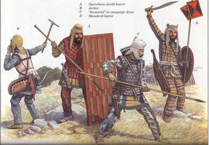- Щиты - их персы использовали редко. Основу персидской армии составляли лучники, которым щиты мешали эффективно стрелять.