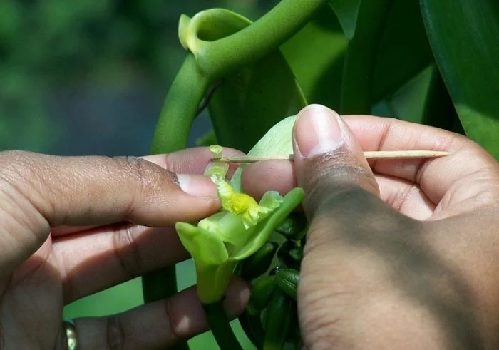Цветы ванили раскрываются только один раз на 2-3 часа и требуют ручного опыления для получения бобов. В природе ваниль опыляется пчёлами-мелипонами (meliponite) - безжальными пчёлами, живущими в тропических лесах Азии, Африки и Южной Америки. Способ ручного опыления придумал мальчик-раб Эдмон Альбиус в 1841 году.