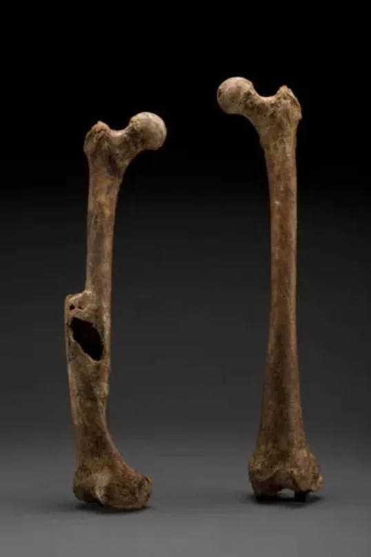 Смещенный, сросшийся перелом правой бедренной кости женщины