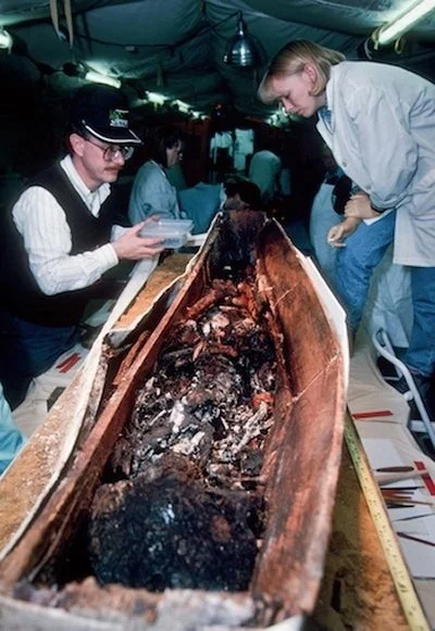 Для обеспечения безопасности при использовании мощной рентгеновской установки вокруг площадки возвели стену из мешков с песком. Прямо на месте ученые провели сканирование гробов, получив четкие изображения человеческих останков внутри. С учетом этого, выбрали место, где сверлить отверстия для отбора проб воздуха. Увы, оказалось, что гробы не были полностью герметичными, так что узнать состав 300-летнего воздуха не удалось. Тем не менее, гробы заполнили чистым охлаждённым аргоном для лучшей сохранности их содержимого.
