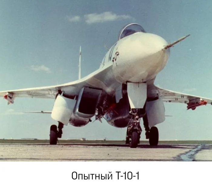 В процессе проектирования возникла интересная задача: в СССР расчетной полетной массой считалась масса самолета с 80% заправкой, однако по емкости баков Т-10 оказался ближе к фронтовому бомбардировщику, чем к истребителю. Отказ от лишнего топлива позволил уменьшить массу, но это сказалось на боевой эффективности. Разработчики и заказчики нашли компромиссное решение, разделив требования к Т-10 на две части: с основной заправкой (около 5,5 т керосина) и с полной заправкой (приблизительно 9 т), но с уменьшением требований к максимальной эксплуатационной перегрузке. В результате Су-27 с полной заправкой имеет большую дальность полета, чем большинство истребителей с подвесными топливными баками. Эскизное проектирование завершилось в 1975 году, а в 1976-м было принято постановление Совета министров СССР о разработке Су-27. С февраля 1976 года главным конструктором стал М.П. Симонов. Первый полет на Т-10-1 состоялся 20 мая 1977 года под управлением В.С. Ильюшина. В 1978 году в Комсомольске-на-Амуре началась сборка самолетов установочной партии, но выяснилось, что, хотя самолет мог быть запущен в серийное производство, он не соответствовал техническому заданию и проигрывал F-15. Поэтому, по настоянию М.П. Симонова, этот вариант истребителя не был запущен в серийное производство.