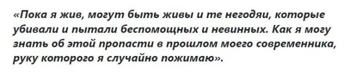 «Я считаю, что дать пищу и одежду немцам, значит непременно отнять её у наших союзников… Если бы я выбирал между греческими, чешскими, французскими, бельгийскими, китайскими, голландскими, норвежскими, русскими, еврейскими и немецкими детьми, я точно бы не выбрал последних».