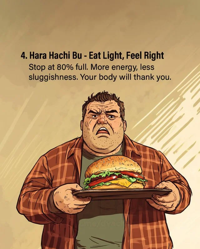 Хара хачи бу – принцип легкого питания, который подразумевает остановку, когда вы насытились на 80%. Переедание приводит к тому, что организм начинает тратить энергию на переваривание пищи, а не на выполнение ваших задач.