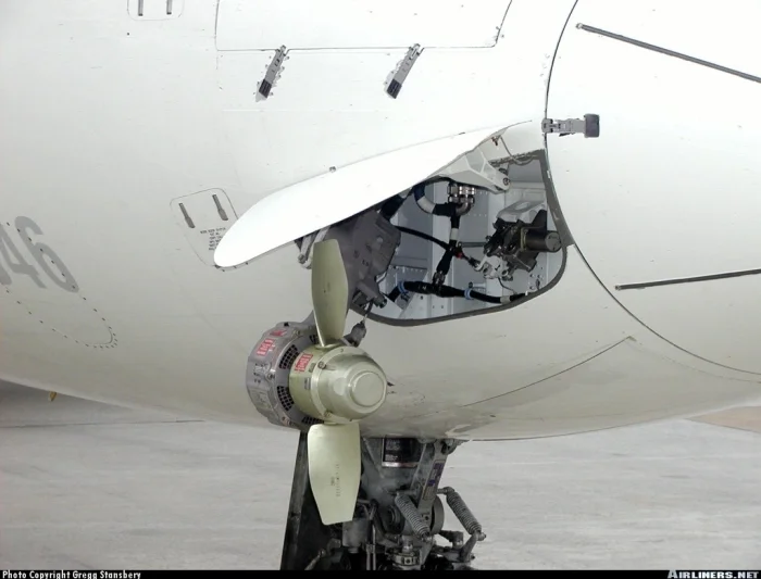 Когда самолет фактически достигает скорости 430 км/ч, пилоты прекращают интенсивное снижение. Они все еще слишком высоко, чтобы запустить вспомогательную силовую установку (ВСУ). Однако на CRJ200 есть аварийная авиационная турбина (ram air turbine, RAT) — небольшой пропеллер с электрическим генератором, предназначенный для аварийного электропитания. Пилоты запускают её, но её мощности оказывается недостаточно для перезапуска двигателей.