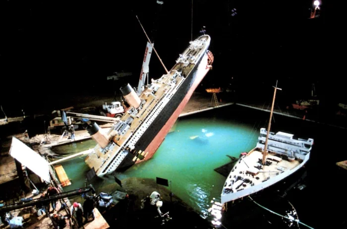 В фильме «Титаник» (1997) режиссёр Джеймс Кэмерон стремился максимально точно воссоздать интерьеры корабля. Для этого он привлек художников к изучению реального затонувшего «Титаника», используя подводные аппараты. Многие детали, такие как узоры на стенах и мебель в первом классе, были скопированы с оригинала. Однако из-за плохой видимости под водой некоторые элементы декора пришлось восстанавливать, опираясь на фотографии и чертежи того времени. Более того, для съёмок в бассейне была построена точная копия части корабля, которая затем была затоплена — это один из самых дорогих реквизитов в истории кино.