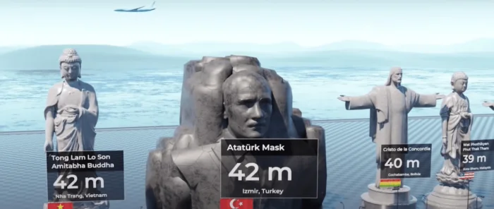 Статуи Конкордия и ататюркская статуя в Турции преодолели отметку в 40 метров. И, конечно же, снова фигурирует ещё одна статуя Будды