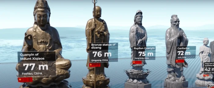Особенно впечатляющими являются статуи, расположенные в Китае, высота которых превышает 70 метров