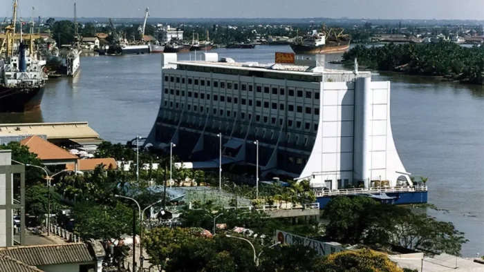 О плавучести уже не могло быть и речи. Хотя отель всё еще находился на воде, он был надежно пришвартован к берегу. Конструкция претерпела значительные изменения: вся подводная часть была демонтирована (в мутной воде Сайгона ничего не разглядеть), а корты и бассейны тоже были ликвидированы.