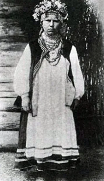 Девушка в двурогом кокошнике с фатой, 1900-е гг.