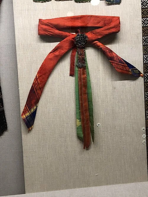 Замужние женщины иногда носили по два платка. Под первый платок, обычно с мелким узором или чисто белый, убирали волосы. Второй повязывался поверх, так чтобы его край был виден на лбу, подчеркивая лицо. Существовали разные способы ношения платка: чаще всего замужние женщины завязывали концы на затылке или, скрестив их под подбородком, оборачивали вокруг шеи и завязывали сзади. Девушки и пожилые женщины предпочитали завязывать платки под подбородком.