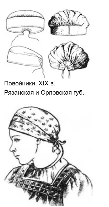 Замужние женщины часто использовали составные головные уборы. В качестве нижнего слоя служил повойник (от слова «повивать») – мягкая шапочка, полностью скрывающая волосы. Повойник был нижним слоем, поверх которого в повседневной жизни надевали платок, а по праздникам – кокошник. Ходить в одном повойнике считалось неприличным.