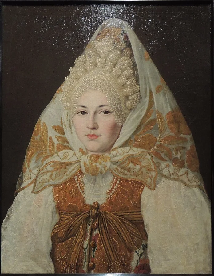 Абрам Клюквин. «Женщина в торопецком жемчужном кокошнике и платке», начало XIX века