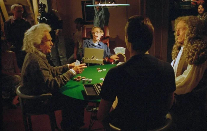 Согласившись сняться в «Звёздном пути» в эпизодической роли самого себя, Стивен Хокинг осуществил две заветные мечты. Первая - сняться в его любимом сериале «Звёздный путь». Вторая - сыграть в карты с Исааком Ньютоном и Альбертом Эйнштейном.