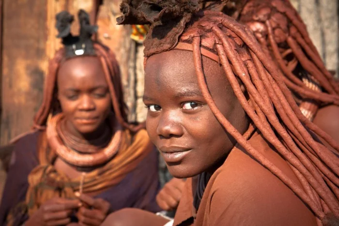 У народа химба в Намибии существует уникальная традиция: женщины покрывают свою кожу и волосы смесью из красной глины, жира и ароматических трав. Этот «красный» стиль не только защищает от солнца и насекомых, но и считается символом красоты и культурной идентичности. Кстати, мытьё волос - довольно редкое явление, так как их «стиль» поддерживается на протяжении многих лет.
