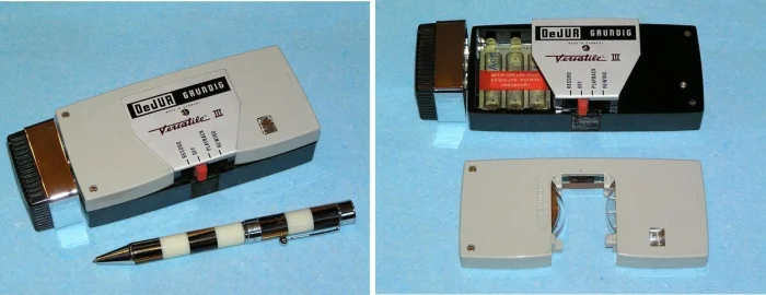 Немецкий концерн Grundig разработал свою версию аудиокассеты для портативного диктофона. Как видно, размер кассеты практически совпадал с габаритами самого устройства.