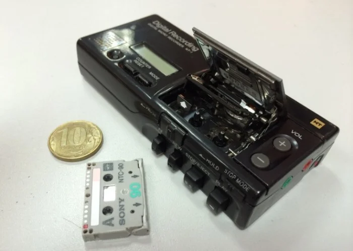 В 1992 году фирма Sony выпустила диктофон Scoopman, где применялась более упрощенная технология DAT. Можете представить размеры кассеты этого шедевра японских "Левшей".